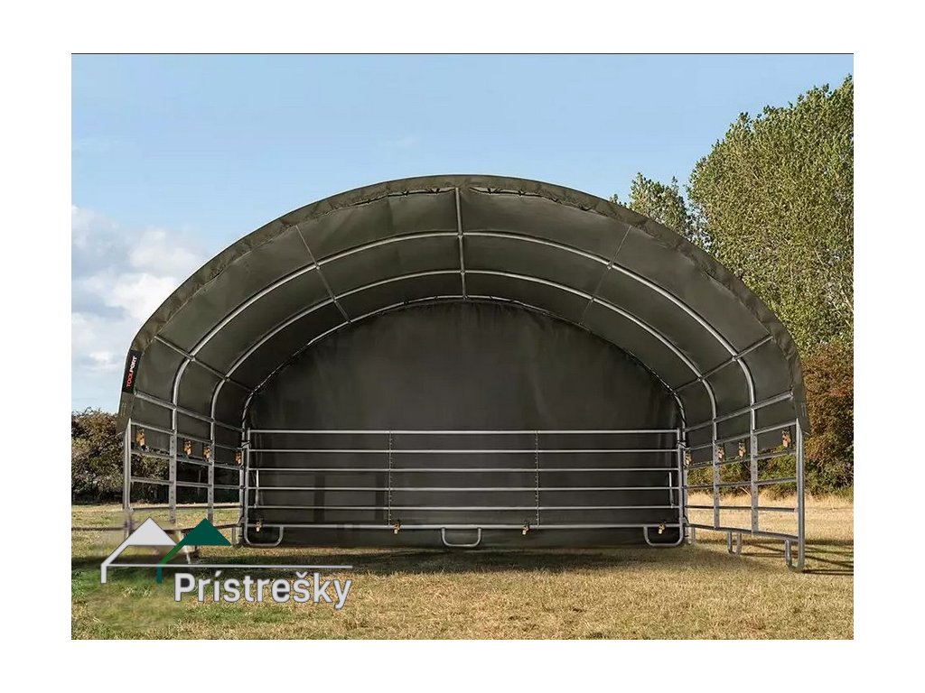 Tento stan na pasienky, skonštruovaný na celoročné použitie, odolá silám živlov a poskytuje spoľahlivú ochranu po celý rok. Oceľové rúry, pozinkované podľa DIN EN ISO 19598, a oblúková konštrukcia zaisťujú vysoký stupeň bezpečnosti a stability. Vďaka jednoduchému systému zástrčiek a skrutiek sa profesionálny stan na pasienky ľahko postaví a zloží. Stan sa ľahko a bezpečne pripevní k zemi pomocou upevňovacieho materiálu, ktorý je súčasťou dodávky. Zvláštnosťou profesionálnych pasienkových stanov je inteligentná konštrukcia: Vďaka panelovým prvkom, každý so šírkou len 2 m, sa stan ľahko postaví, preváža a v prípade potreby aj skladuje, čo šetrí miest