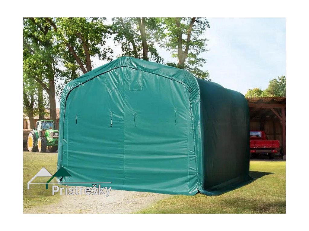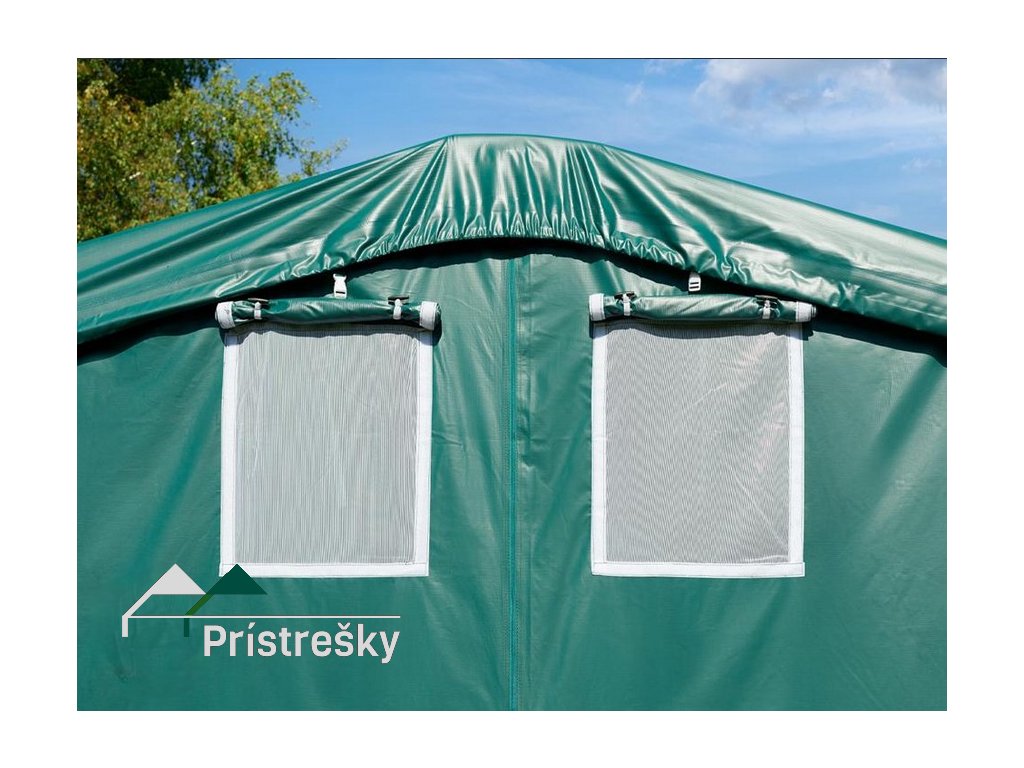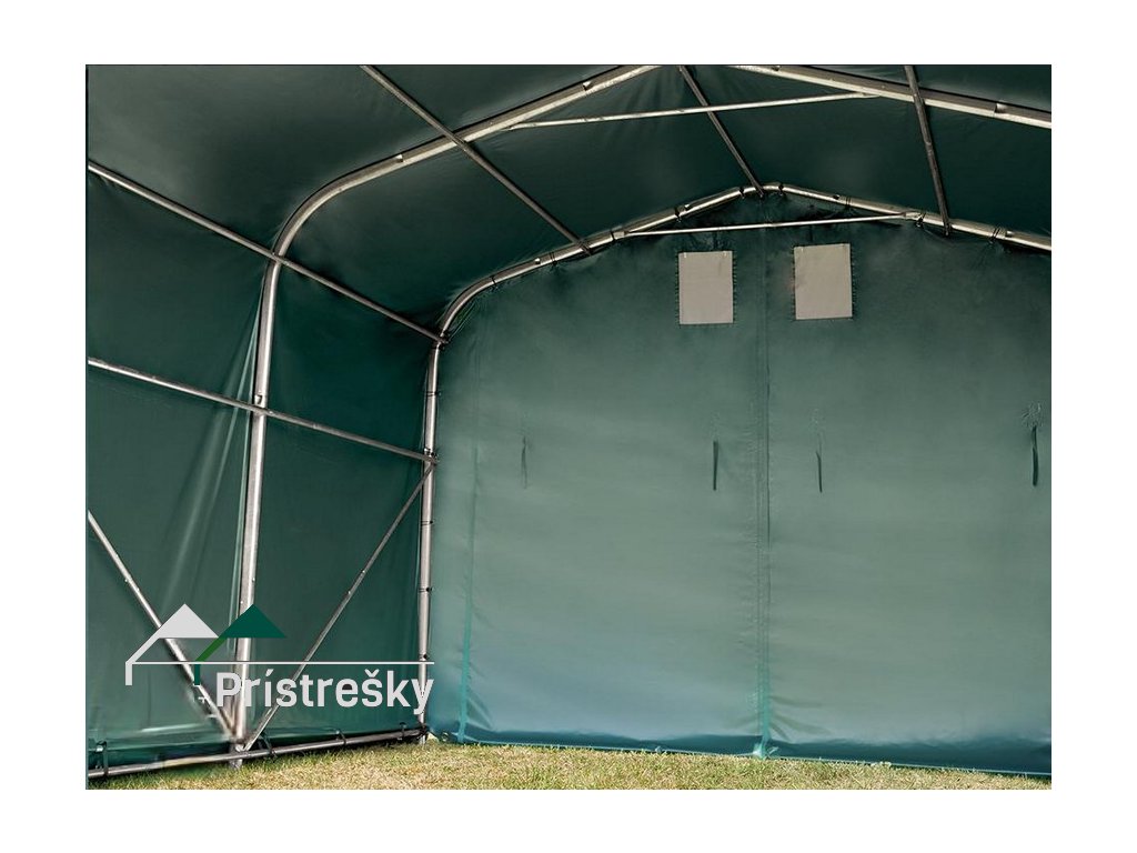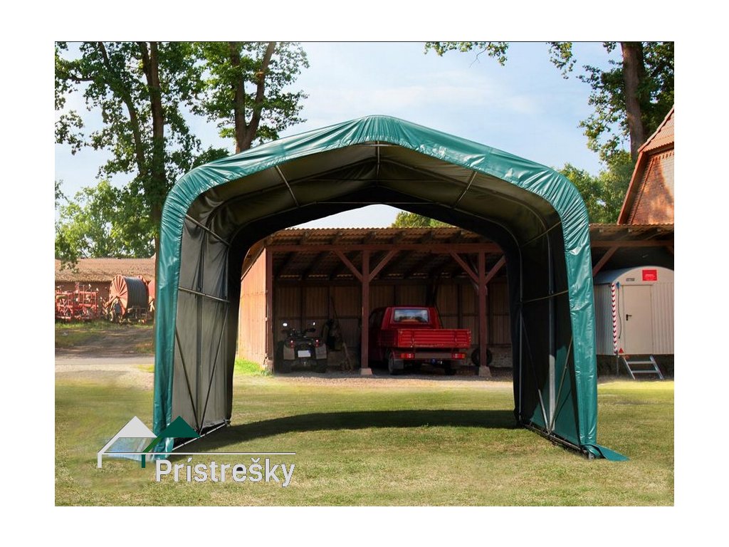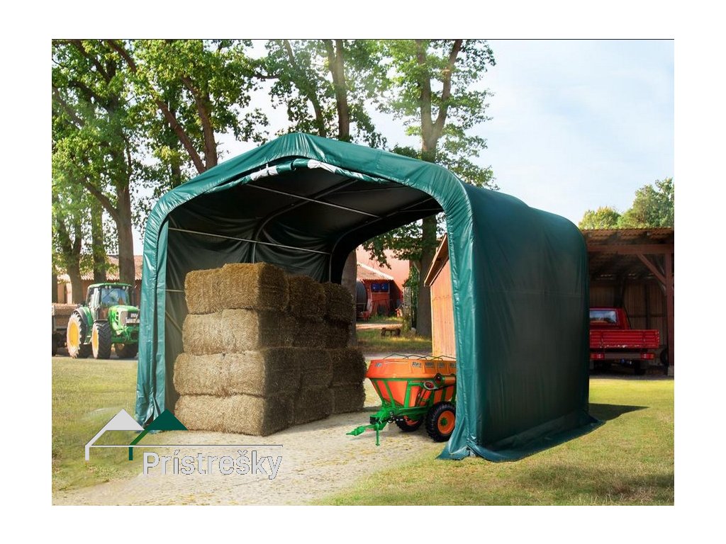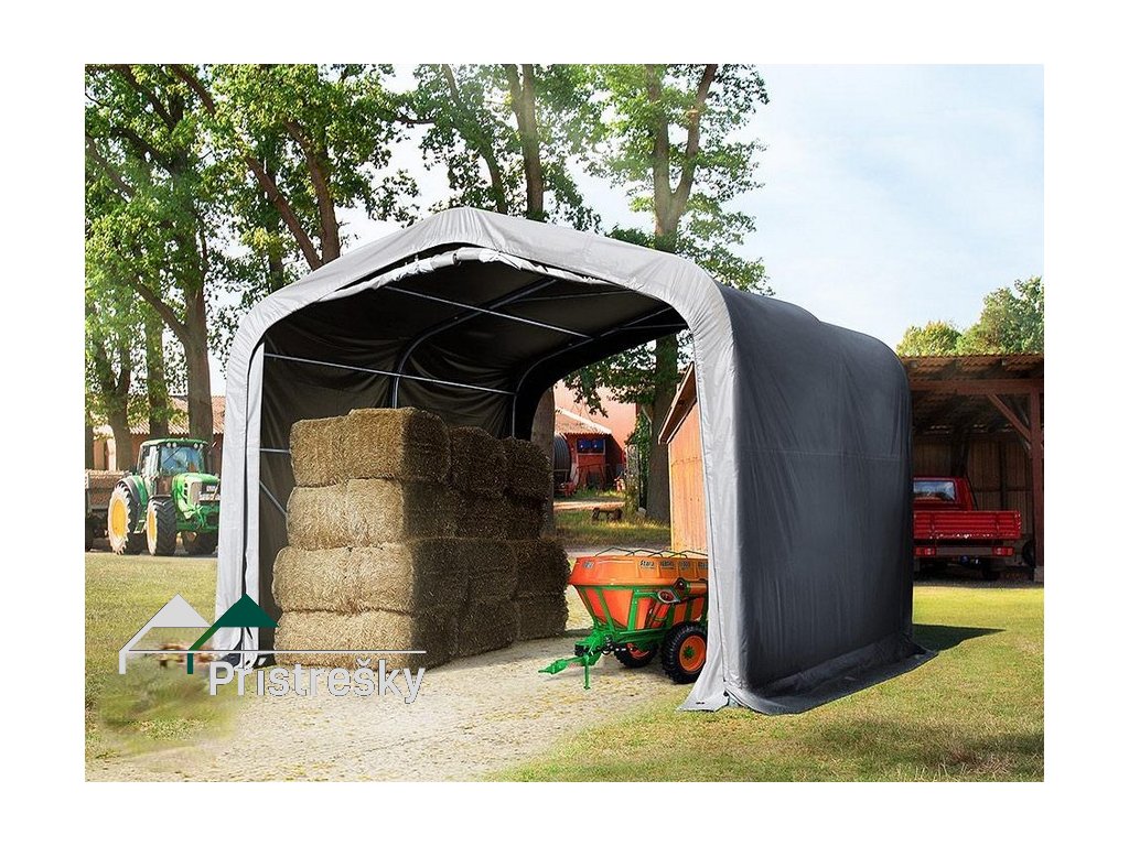 Pasienkový prístrešok 4x4 m má navyše dvojitú zvislú bočnú výstuž a vodorovnú výstuž v hrebeni. Kvalitná, cca 850 g/m² 20) ťažká PVC plachta s vnútornou mriežkovanou tkaninou odolnou proti roztrhnutiu je pevne pripevnená ku konštrukcii pomocou špeciálneho napínacieho systému, čím sa predchádza tvorbe vodných vreciek a znižuje sa náchylnosť na vietor. Strecha a bočná plachta sa skladá z jedného kusu a poskytuje tak dodatočnú stabilitu. Plachta sa vyrovnáva a napína integrovaným napínacím systémom. Bez problémov je možné aj neskoršie prestavenie plachty. Zabudované ventilačné klapky podporujú efektívnu cirkuláciu vzduchu a zabraňujú hromadeniu vlhkosti. Tento prístrešok na pastvu je ideálny ako skladovacie miesto na slnku, daždi a vetre. V prípade potreby máte tiež možnosť uzavrieť jednu alebo obe strany stanu s pridruženou prednou a zadnou stenou.