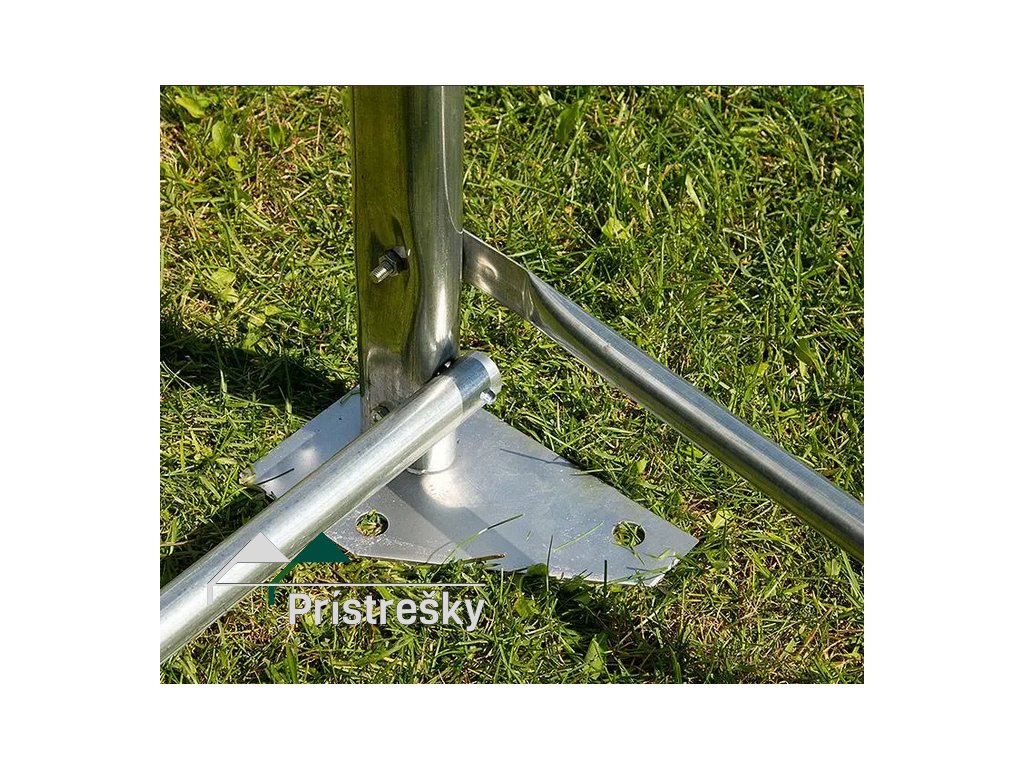 Konštrukcia prémiového prístrešku na pasienky 4x4 m je navrhnutá tak, aby vydržala aj veľmi vysoké zaťaženie. Základom je extra pevný oválny trubkový profil z celopozinkovanej ocele s hrúbkou steny cca 1,9 mm. Pre ďalšie vystuženie sú v streche inštalované ďalšie priečniky. Prispôsobené spracovanie, veľké nožičky a bezpečné ukotvenie v zemi robia z tejto konštrukcie robustný prístrešok na pasienky, ktorý ponúka spoľahlivú ochranu po dlhú dobu.
